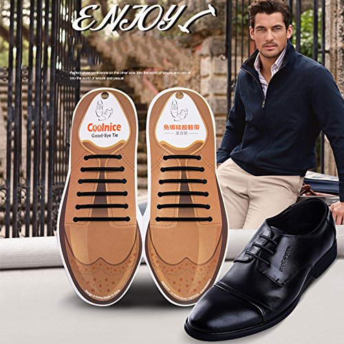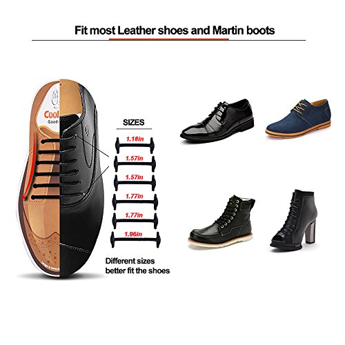 Coolnice Lacci Elastici No Tie Lacci per Scarpe Adulti Donna Uomo Pizzo Elastico Impermeabile Pratica in Silicio per Scarpe in pelle Sportive Sneaker Boots Scarpe Stile Commerciale Formale-Nero