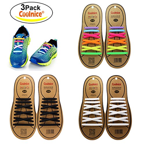 Coolnice Lacci Elastici No Tie Lacci per Scarpe Adulti Pizzo Elastico Impermeabile Pratica in Silicio per Scarpe Sportive Sneaker Board-Nero+Bianco+Multicolore