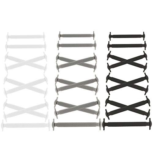 Coolnice Lacci Elastici No Tie Lacci per Scarpe Adulti Pizzo Elastico Impermeabile Pratica in Silicio per Scarpe Sportive Sneaker Board-Nero+Bianco+Grigio