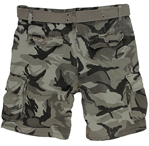 Fun Coolo Pantaloncini Corti Bermuda Cargo Short con tasconi Laterali, con Cintura Mimetico XS 44