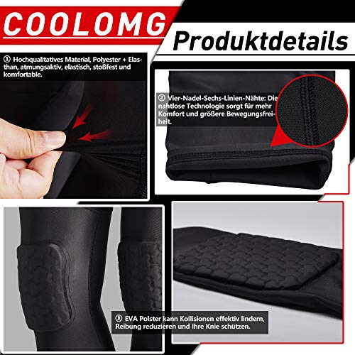 COOLOMG Leggings da basket con imbottitura per ginocchia, da uomo, a 3/4, a compressione, Nero, L