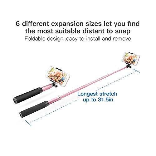 Coolreall Bastone Selfie Bluetooth, Selfie Stick con Asta Estendibile fino a 90cm, Controllo Wireless, Compatibile con Smartphone IOS e Android iPhone Samsung Huawei LG HTC (Rosa)