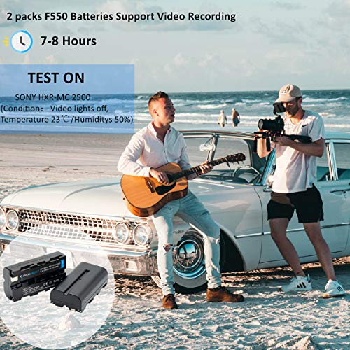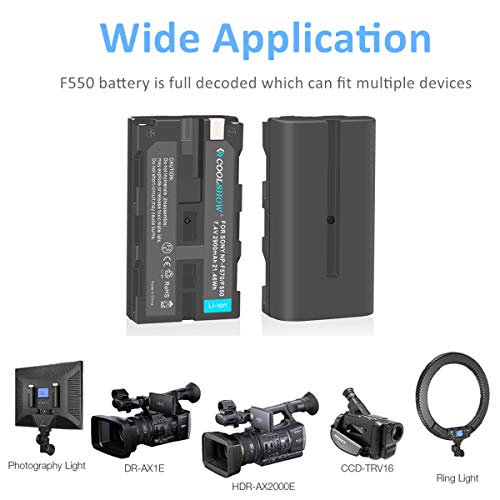 COOLSHOW NP F550 - Batteria di ricambio (2 pezzi), 2900mAh, con LED intelligente, USB F550, caricatore per Sony NP F970,F750,F770,F960,F550,F530,F330,F570,CCD-SC55,TR516 716 TR818 TR910 TR917