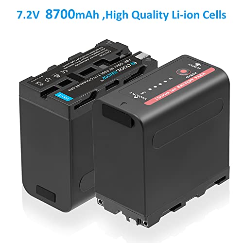 COOLSHOW NP-F970 Batteria di ricambio da 7,4V,8700mAh,NP-F960,NP-F980,NP-F930,NP-F950,2 pezzi di ricambio con uscita compatibile con Sony DCR-VX2100,PD150,PD170,FDR-AX1,HDR-AX,FX10