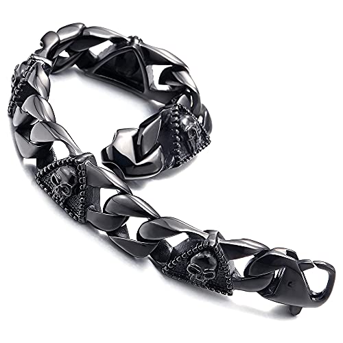 COOLSTEELANDBEYOND Uomo Acciaio Inossidabile Nero Barbozzale Bracciale con Cranio e Punteggiati Triangolo, Gotico Biker, Lucidato Charms