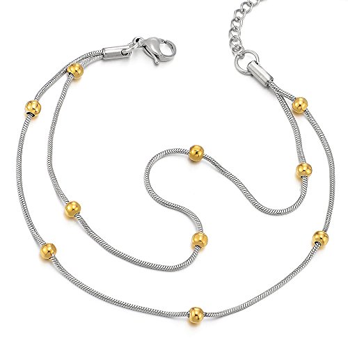 COOLSTEELANDBEYOND Acciaio Inossidabile Due Ranghi Doppia Catena Cavigliera da Donna con Palla Charms Oro e Argento