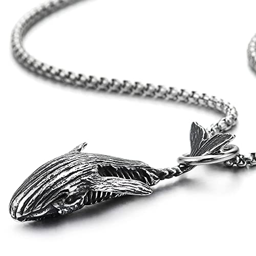 COOLSTEELANDBEYOND Annata Balena Ciondolo, Collana Uomo Donna, Acciaio Inossidabile, Catena del Grano 60cm, Unico