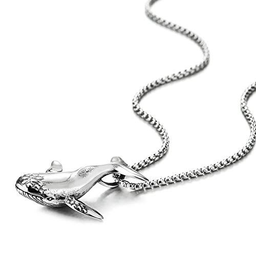 COOLSTEELANDBEYOND Annata Balena Ciondolo, Collana Uomo Donna, Acciaio Inossidabile, Catena del Grano 75cm, Unico
