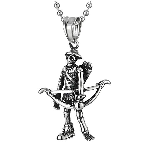 COOLSTEELANDBEYOND Annata Cacciatore Teschio Cranio Corpo Freccia Arco Cravatta Ciondolo Collana con Pendente da Uomo, Acciaio Catena 60CM