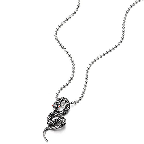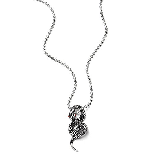 COOLSTEELANDBEYOND Annata Cobra Serpente Ciondolo con Rosso Zirconi, Uomo Donna Collana con Pendente, Acciaio Inossidabile, Catena 60cm