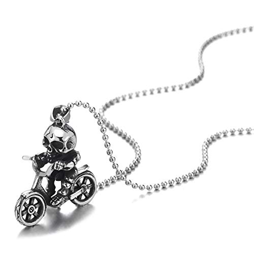 COOLSTEELANDBEYOND Annata Cranio Scheletro Andare in Moto Ciondolo, Collana con Pendente da Uomo Ragazzi, Acciaio, Palla Catena 60CM