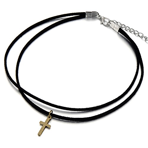 COOLSTEELANDBEYOND Annata Croce Nero Collana Girocollo Choker Collana da Donna, Ciondolo, Charm Pendente Donna Ragazze