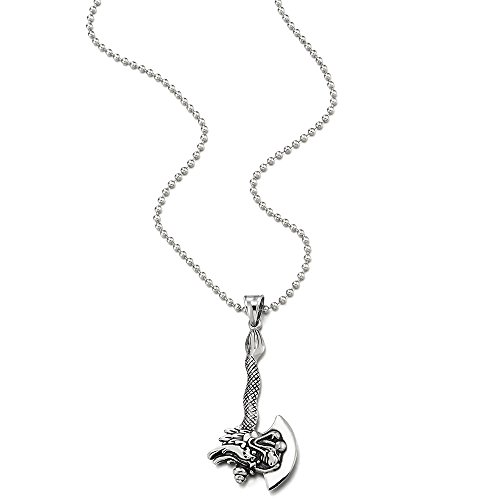 COOLSTEELANDBEYOND Annata Drago Ascia Ciondolo, Collana con Pendente da Uomo Ragazzi, Acciaio Inossidabile, Palla Catena 75CM