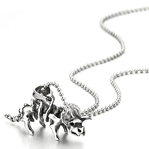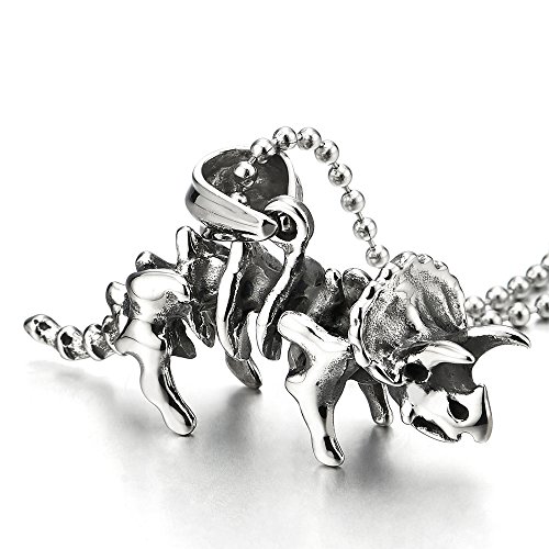 COOLSTEELANDBEYOND Annata Triceratopo Dinosauri Scheletro Collana con Pendente da Uomo Donna, Ciondolo, Acciaio, Palla Catena 75CM