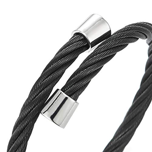COOLSTEELANDBEYOND Argento Nero Bracciale da Uomo Donna, Braccialetto del Polsino, Acciaio Inossidabile, Cavo Intrecciato, Elastico