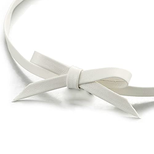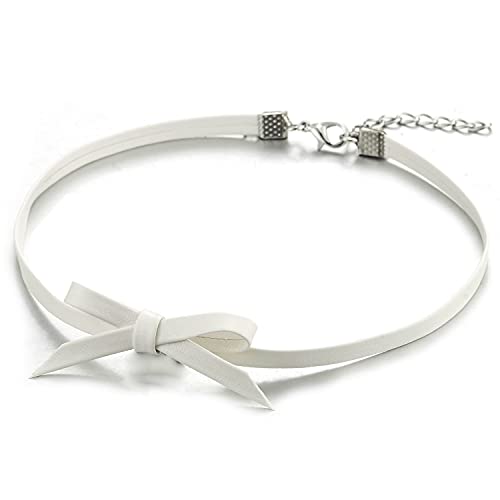 COOLSTEELANDBEYOND Bianco Cravatta Collana Girocollo Pelle Arco Choker Collana da Donna, Ciondolo Pendente