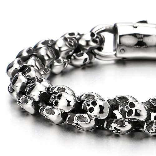 COOLSTEELANDBEYOND Biker Braccialetto del 3D Cranio Teschio, Bracciale da Uomo Donna, Acciaio Inossidabile, Gotico, Lucidato a specchio