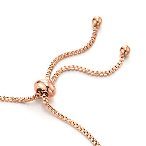 COOLSTEELANDBEYOND Bracciale Donna, Rosa Oro Acciaio Casella Catena Collegamento Chain Braccialetto Colorati Zirconi Protezione Malocchio