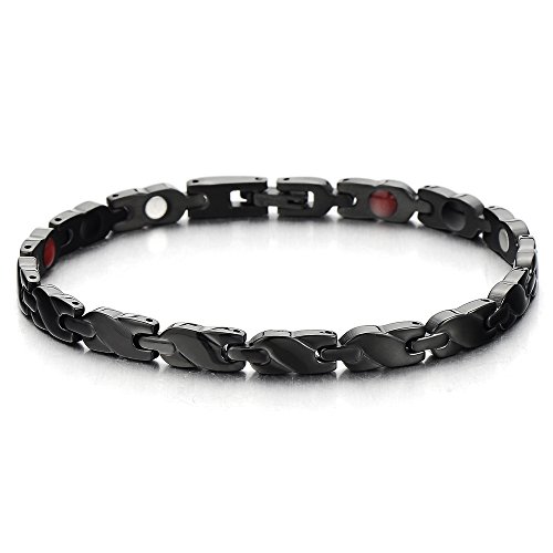 COOLSTEELANDBEYOND Nero Braccialetto Donna Uomo, Bracciale in Acciaio, Link, Terapia Elemento Magneti Germanio, Strumento di Rimozione