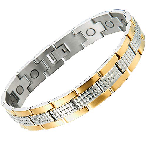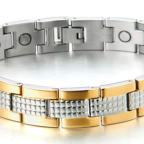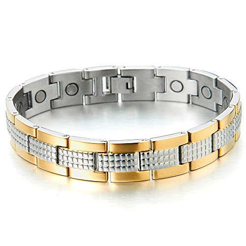COOLSTEELANDBEYOND Braccialetto Magnetico, Bracciale da Uomo, Acciaio, La Elemento con Magneti e Germanio, Link, Oro Argento Due Toni
