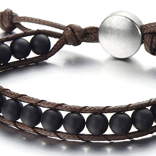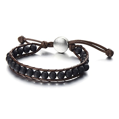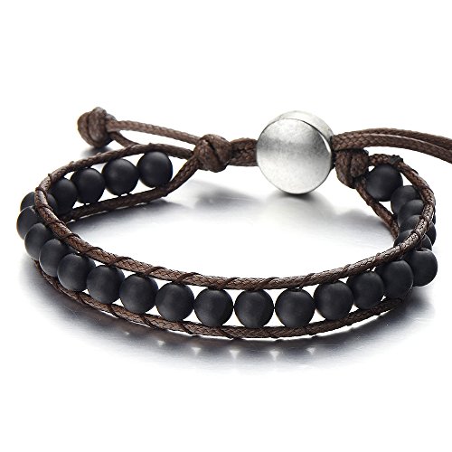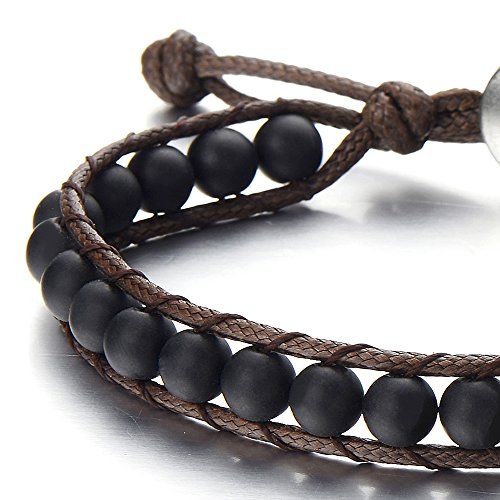 COOLSTEELANDBEYOND Braccialetto di Perline, Bracciale da Uomo Donna, Tibetan Beads Buddhist Prayer Mala, Sintetico Nero Onice