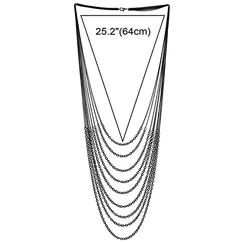 COOLSTEELANDBEYOND Nero Cascata Multi Strati Lunga Catena Statement Dichiarazione Pendente Collana, Unico Hipster