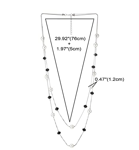 Charms Pendente Nero Statement Dichiarazione Collana Due Filo Lunga Catena con Nero Cristallo E Perline, alla Moda