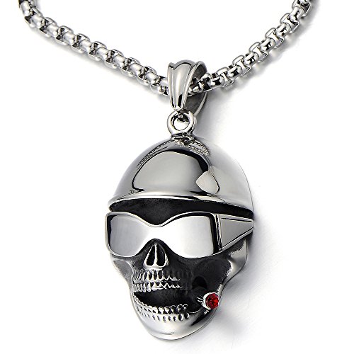 COOLSTEELANDBEYOND Ciondolo Grand Cranio, Collana con Pendente Teschio da Uomo, Acciaio, Biker, Gothic, Hip-Hop Catena Grano 75cm