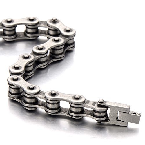 COOLSTEELANDBEYOND Classico - Bracciale da Uomo, Catena di Bicicletta, Acciaio Inossidabile, Finitura Ruvida