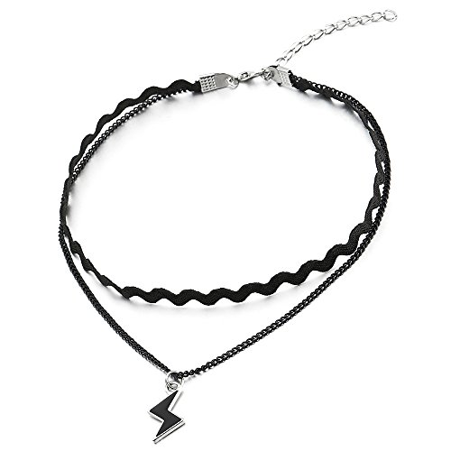 COOLSTEELANDBEYOND Due File Nero Collana Girocollo Choker Collana da Donna, Ciondolo, Catena e Fulmine Bullone Charm Pendente
