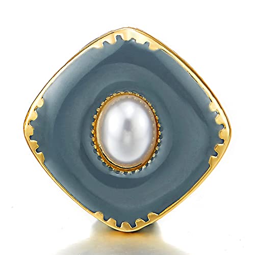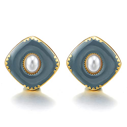 COOLSTEELANDBEYOND Alla Moda Colore Oro Rombo Orecchini con Scuro Verde Smalto e Perla