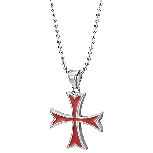 COOLSTEELANDBEYOND Croce Collana Pendente con Rosso Smalto, Uomo Donna Croce Ciondolo, Acciaio Inossidabile, Palla Catena 75CM