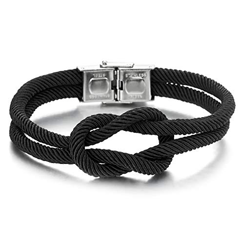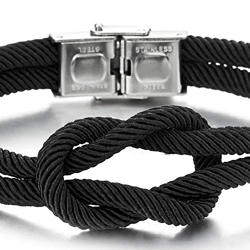 COOLSTEELANDBEYOND Uomo Donna Braccialetto di Amicizia, Nero Nodi Marinari Nodo Nautico Cotone Cinghie Braccialetto, Fibbia Chiusura