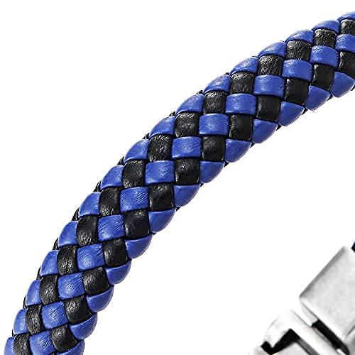 COOLSTEELANDBEYOND Uomo Donna Braccialetto di Nero Blu Pelle Intrecciata, Uomo Braccialetto di Cuoio Intrecciato, Annata Gancio Chiusura