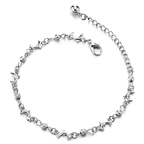 COOLSTEELANDBEYOND Donna Collegamento Chain Cavigliera con Delfini Charms, Palla e Campana, Regolabile