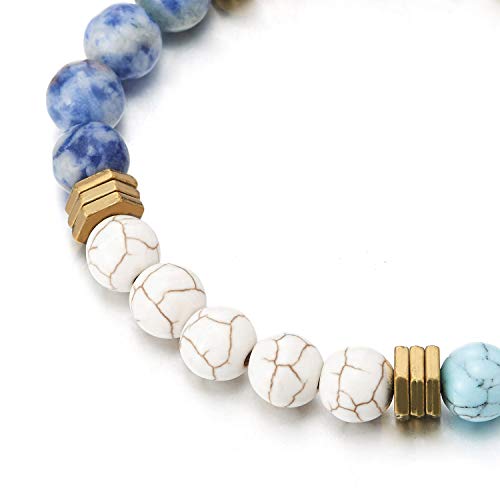 COOLSTEELANDBEYOND Uomo Donna Colorata Pietre Perline Bracciale con Oro Esagonale Fascino con Charms, Braccialetto, Alla Moda, Estensibile