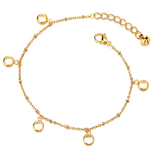 COOLSTEELANDBEYOND Donna Due Ranghi Acciaio Inossidabile Color Oro Cavigliera con Aperto Cerchio Charms e Campana