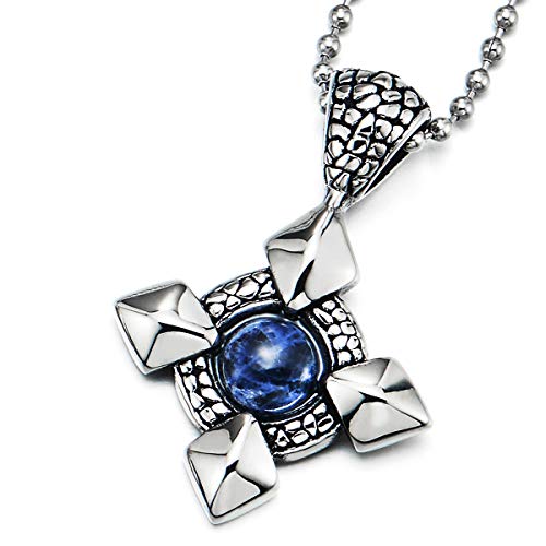 COOLSTEELANDBEYOND Uomo Donna Spike Croce Ciondolo Collana Pendente Pietre Perlina e Modello Pelle Serpente Modello, Acciaio, Catena 75CM