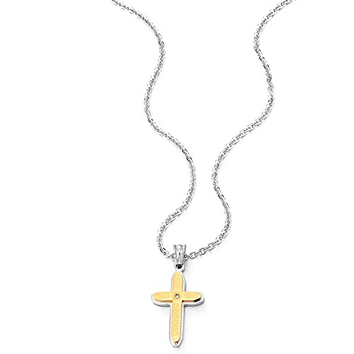 COOLSTEELANDBEYOND Doppi Strati Acciaio Argento Oro Croce Ciondolo Collana Pendente Croce con Motivo Chiave Greco e Zirconi Donna Uomo