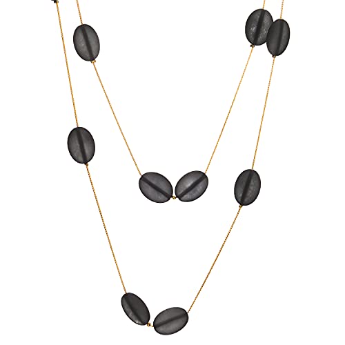 COOLSTEELANDBEYOND Elegante Oro Statement Dichiarazione Collana Due Filo Lunga Catena con Nero Ovale Resina Perline Charm Pendente