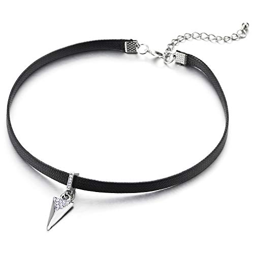 COOLSTEELANDBEYOND Girocollo Choker Nero Pelle Pendente con Pendenti Strass Triangolare Piramide Charms, Collana da Donna, Ciondolo