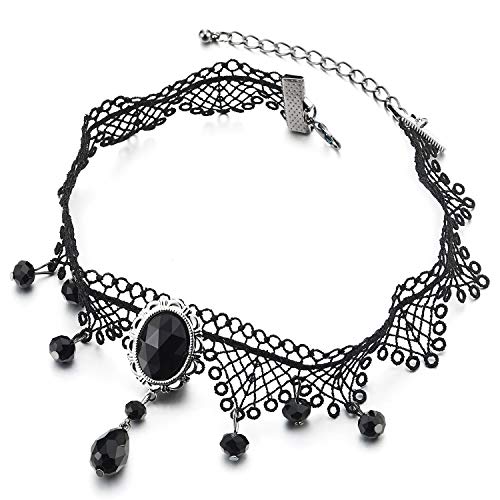 COOLSTEELANDBEYOND Gotico Vittoriano Nostalgico Nero Pizzo Collana Girocollo Choker Collana Donna, Pendenti Nero Ovale Perlina Charm
