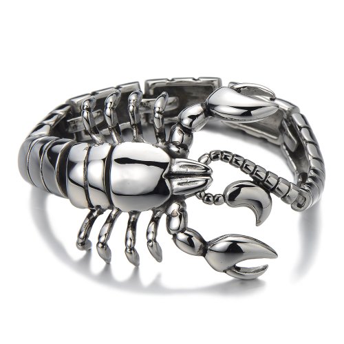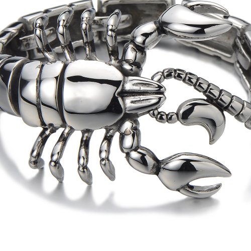 COOLSTEELANDBEYOND Grande Braccialetto Scorpione, Bracciale da Uomo, Acciaio Inossidabile, Colore Argento, Lucidato a specchio