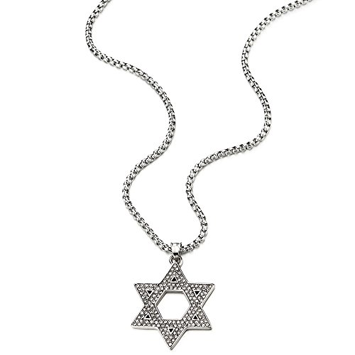 COOLSTEELANDBEYOND Grande Stella di David Ciondolo con Zirconi, Collana con Pendente da Uomo Donna, Acciaio Inossidabile