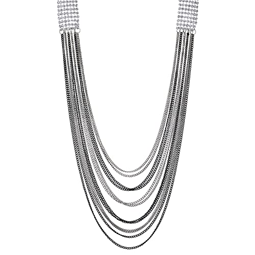 COOLSTEELANDBEYOND Grigio Nero Cascata Multi Strati Catena Statement Pendente con Collana Strass Pavé Cluster Festa Abito da Sera