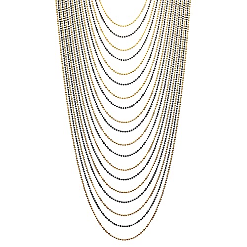 COOLSTEELANDBEYOND Nero Oro Lunga Statement Dichiarazione Pendente Cascata Multi Strati Palla Chain, Abito da Sera