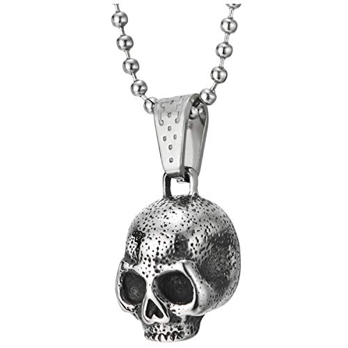 COOLSTEELANDBEYOND Piccolo Punteggiati Ruvido Texture Cranio Ciondolo, Teschio Collana con Pendente da Uomo, Acciaio, Palla Catena 60CM