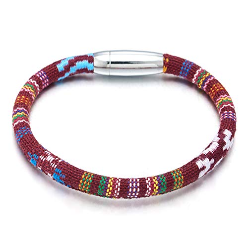 COOLSTEELANDBEYOND Rosso Tribal Arte Popolare Etnico Cotone Braccialetto, Uomo Donna Ragazzi Bracciali da Avvolgerecon, Chiusura Magnetica