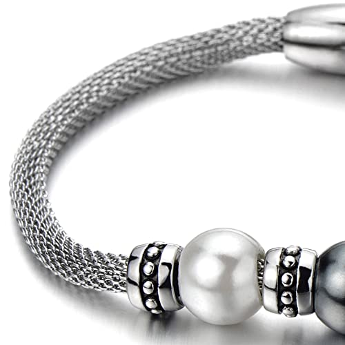 COOLSTEELANDBEYOND Sintetica Perla Grigio Bianco, Charm Bracciale da Donna Ragazze, Braccialetto di Fascino