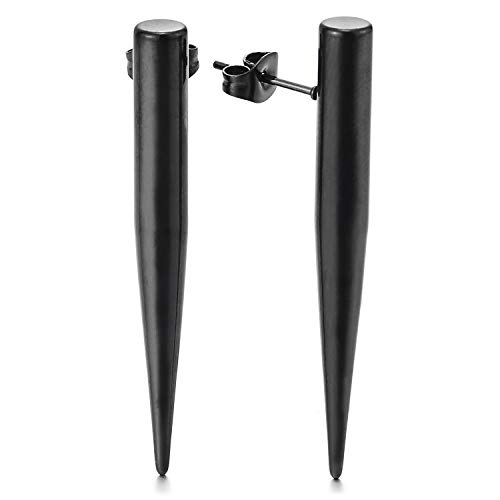 COOLSTEELANDBEYOND Nero Lungo Spike Picco Orecchini, Orecchini da Uomo Donna, Acciaio Inossidabile, 1 Coppia, LucidoLunga Cool